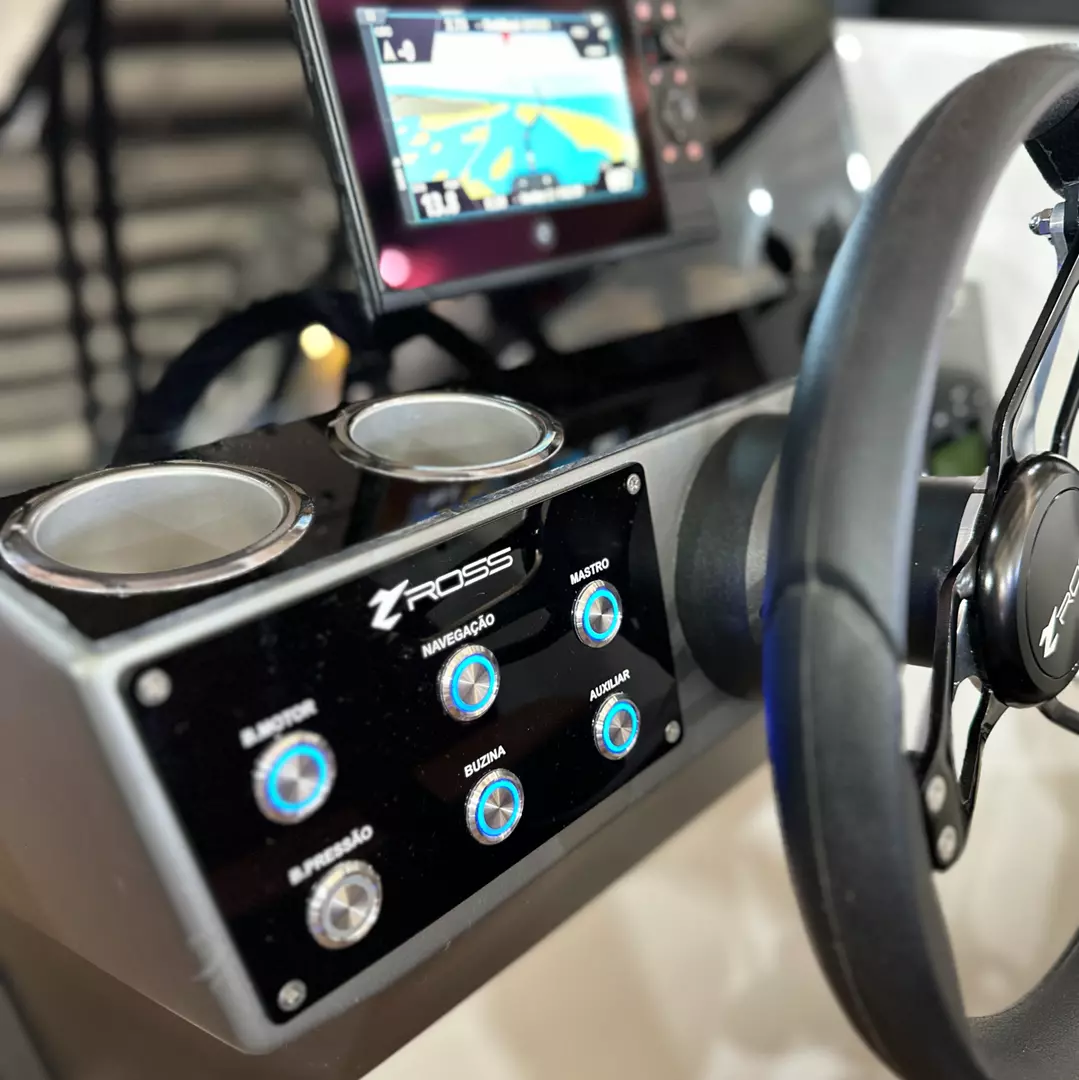 Local definido para instalação: relógio de trim do motor, conta-giro, conta-milhas e rádio VHF